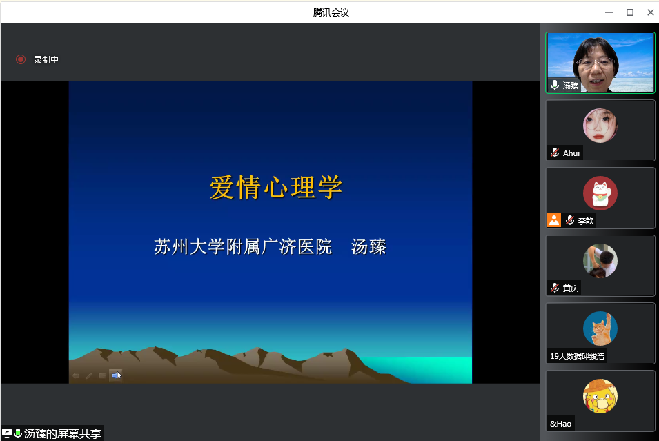 为使我系学子进一步学习和理解恋爱知识,树立正确的恋爱观,我系于5月16日晚进行“吾心吾爱·飞扬青春”第三届心理健康节“爱情心理学”主题讲座。讲座由苏州大学附属广济医院心理科临床主任、苏州大学医学部硕士生导师汤臻教授主讲,统计系学工办主任李歆主持,全体班主任和同学们参加。